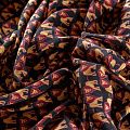Итальянская плательно-блузочная вискоза со стилизованным "царским" принтом на черном фоне. Ткань очень пластичная, отлично драпируется и струится, мягкая и приятная на ощупь, не просвечивает. Прекрасно подойдет для пошива платья, рубашки, топа, блузки, юбки, летнего костюма.