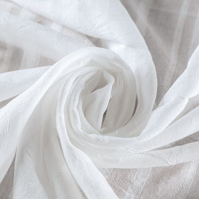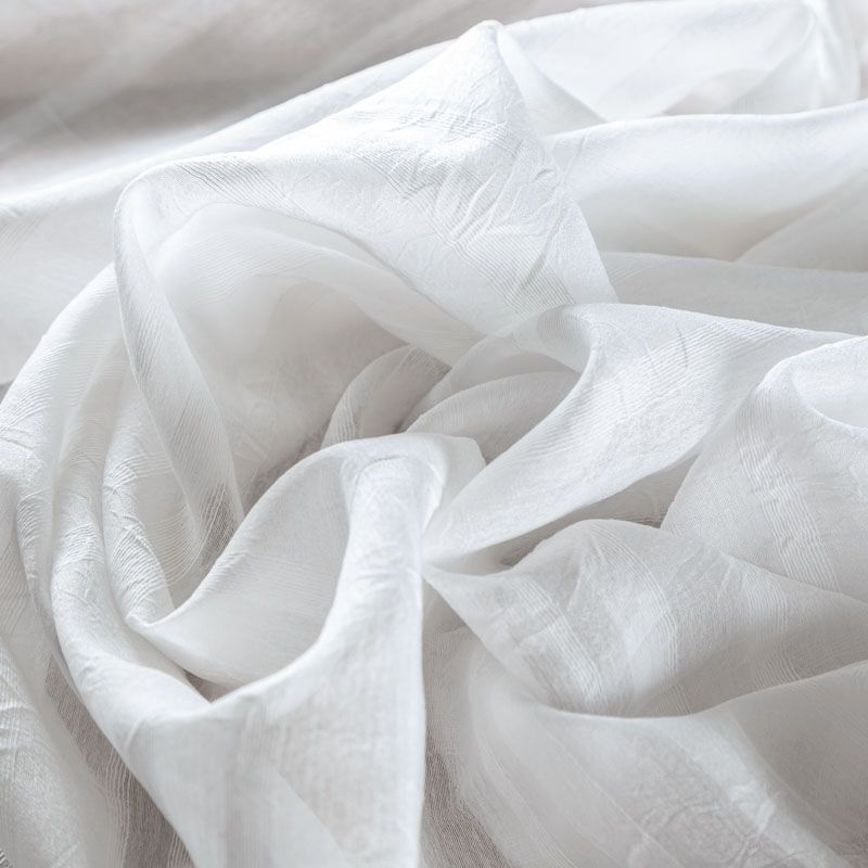 Итальянская плательно-блузочная вискоза с полупрозрачными горизонтальными полосками из органзы молочного оттенка. Ткань очень легкая, воздушная, хорошо драпируется, приятная на ощупь, просвечивает, требуется подклад. Прекрасно подойдет для пошива платья, сарафана, рубашки, топа, блузки, юбки, летнего костюма.