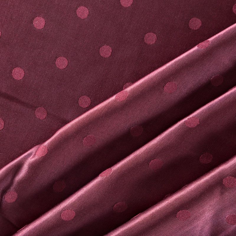 Атласная жаккардовая вискоза винного оттенка. Ткань плотная, но пластичная, хорошо драпируется и струится. Поверхность ткани гладкая, атласная, приятная на ощупь. Подойдет для пошива платья, сарафана, топа, блузки, рубашки, юбки, костюма в пижамном стиле, брюк свободного кроя, а также как подклад для верхней одежды.