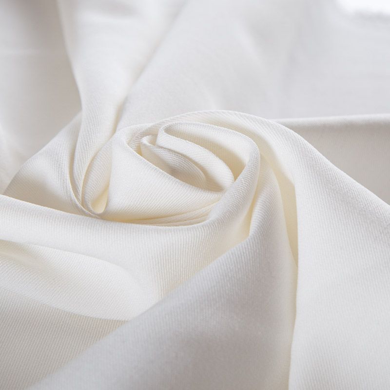 Качественная плотная костюмно-плательная вискоза в молочном оттенке. Ткань с диагональным плетением, имеет небольшой благородный матовый блеск, тяжелая, не тянется, прекрасно драпируется и держит форму. Идеально подойдет для пошива костюмов, брюк-карго, джоггеров, платьев, юбок, шорт, пиджаков, комбинезонов, летних парок и тренчей.