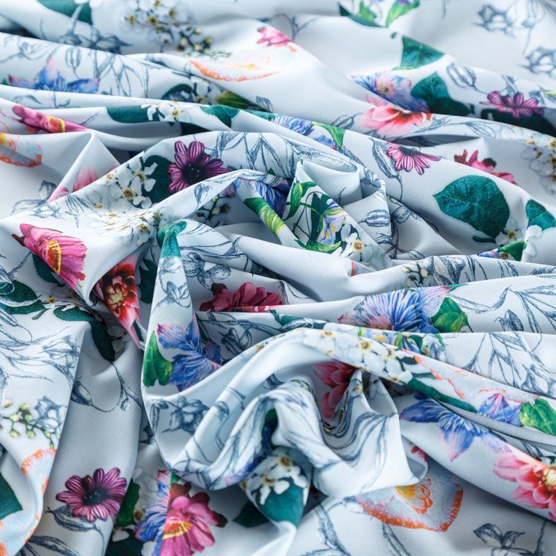 Это элегантная струящаяся ткань, которая превосходно драпируется, всегда изящно выглядит и остается легкой и воздушной,  имеет высокую прочность и большую износоустойчивость. Поверхность ткани матовая, гладкая и ровная, очень приятная на ощупь. Используется для пошива блуз, юбок, платьев, сарафанов, широких брюк.