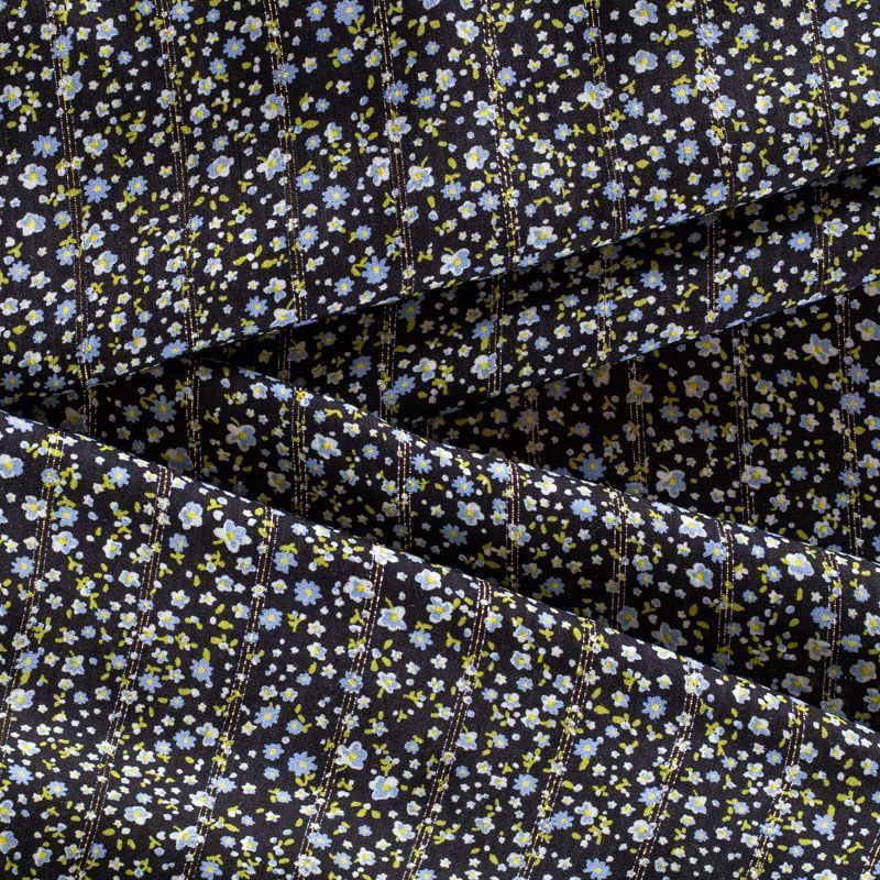 Итальянская плательно-блузочная вискоза с мелким цветочным принтом на черном фоне декорирована тонкой люрексовой полоской. Ткань очень пластичная, отлично драпируется и струится, мягкая и приятная на ощупь, не просвечивает. Прекрасно подойдет для пошива платья, топа, блузки, юбки.