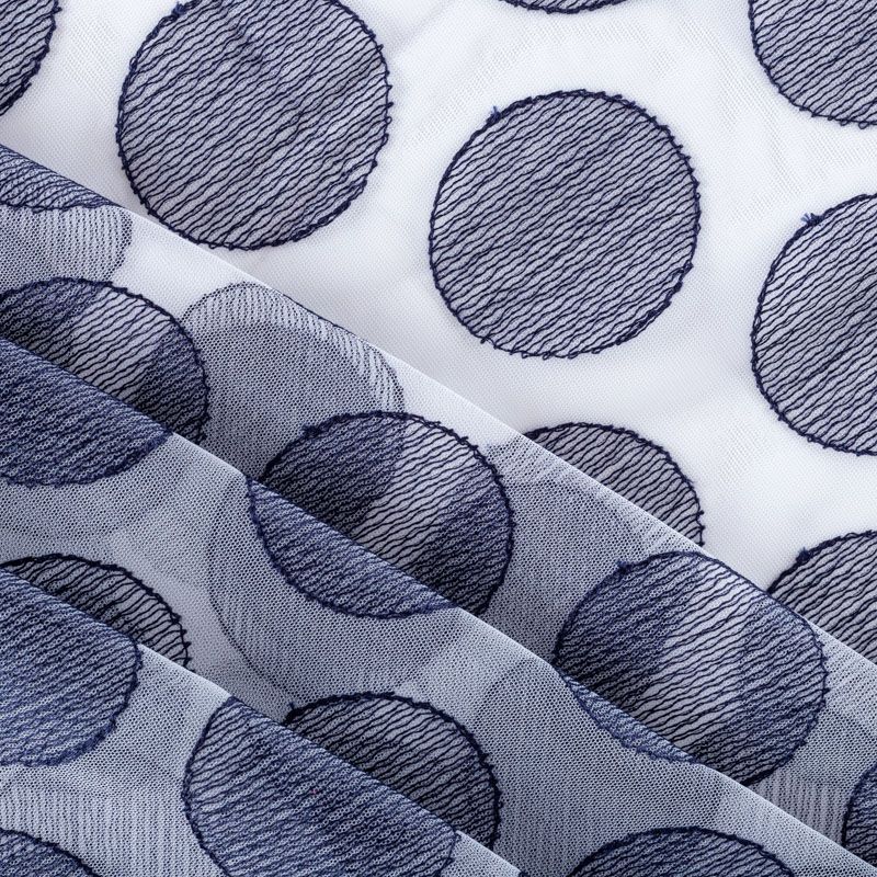 Итальянское полотно молочного цвета с геометрическим узором, вышитом на тонкой сетке с мелкой ячейкой, сетка мягкая, пластичная, матовая, не держит форму. Прекрасно подойдет для вечерних платьев, юбок, топов, бюстье. Эффектно смотрится на теле без подкладочной ткани, например, рукава платья.