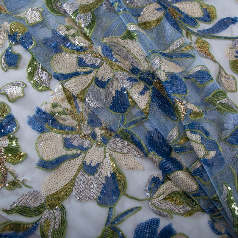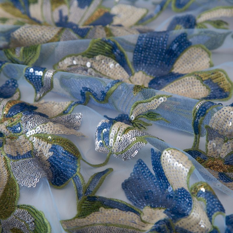 Вышивка на сетке Giambattista Valli 055-19320 голубой в Якутске