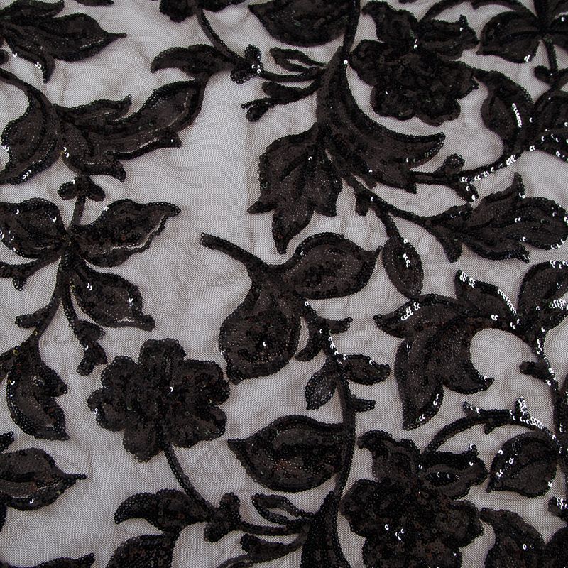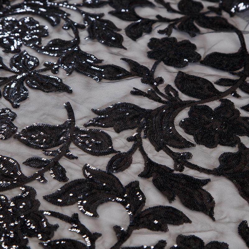 Вышивка с пайетками на сетке Armani 050-19126 черный в Якутске
