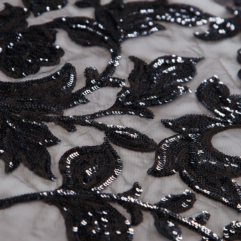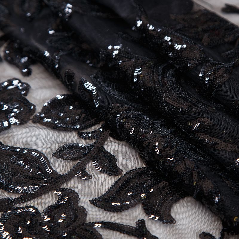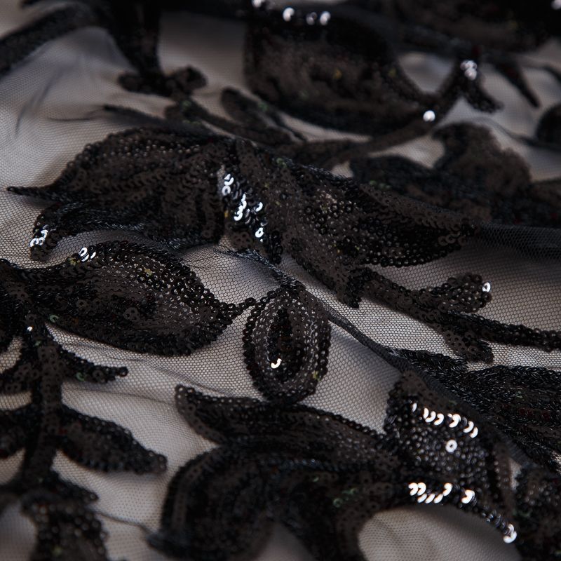 Вышивка с пайетками на сетке Armani 050-19126 черный