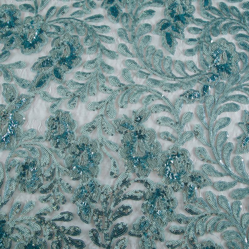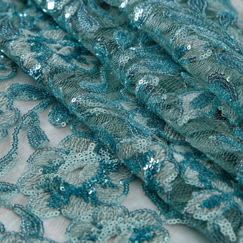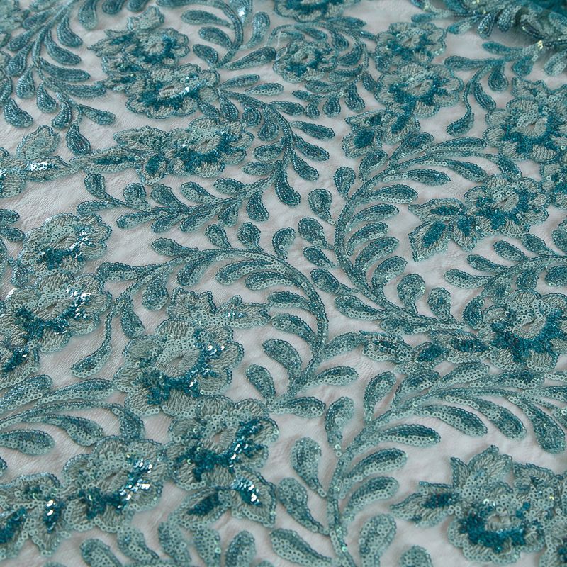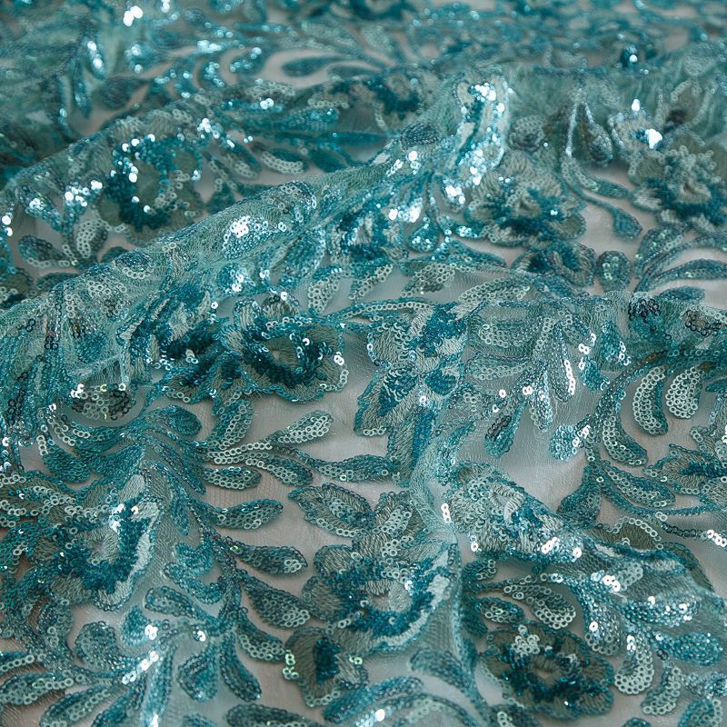 Вышивка с пайетками на сетке Armani 050-19131 морская волна