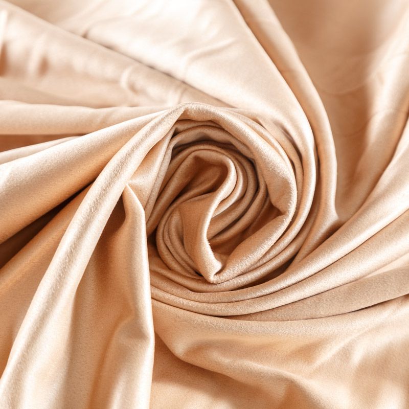 Плотное полотно с мягкой поверхностью, имитирующее замшевую фактуру с матовым ультракоротким ворсом. Комфортный материал достаточно пластичен, тянется за счет эластана в составе, отлично держит форму. Одежда из замши очень уютная и приятная на ощупь, хорошо облегает фигуру. Прекрасно подойдет для пошива платья, брюк, юбок, костюмов, тренчей и жакетов.