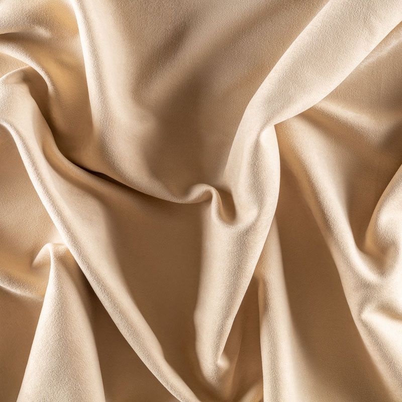 Ткань средней плотности с ворсистой и мягкой поверхностью, имитация замши. Практичная, износостойкая с высоким уровнем светонепроницаемости. Легко драпируется и держит заданную форму. Не сминается, быстро сохнет. Универсальная однотонная ткань, которая впишется в любой стиль интерьера в качестве портьер, римской шторы, скатерти, салфеток, декоративных чехлов, покрывал, подушек.