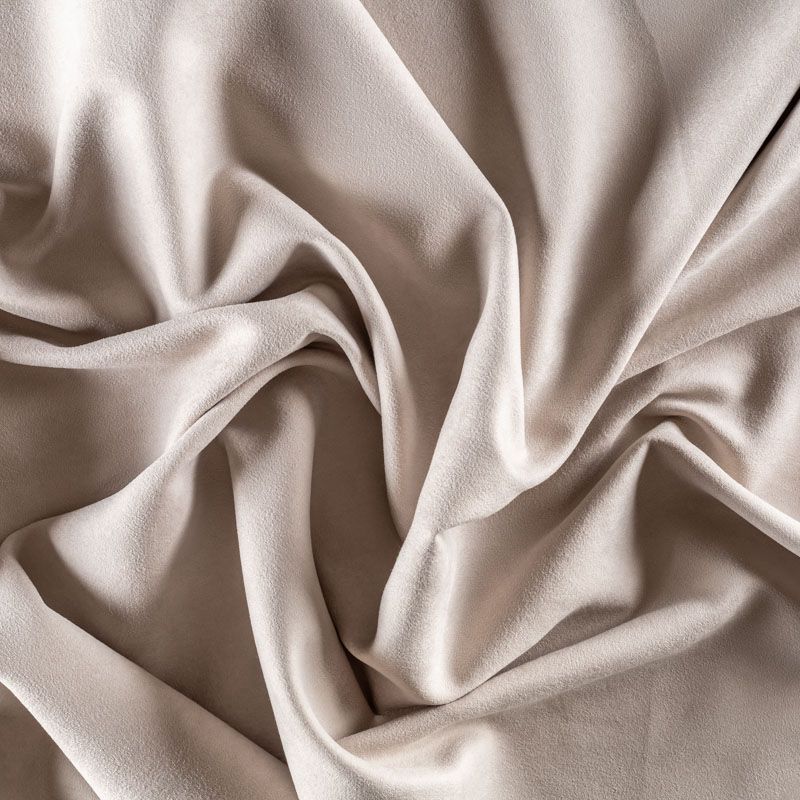 Ткань средней плотности с ворсистой и мягкой поверхностью, имитация замши. Практичная, износостойкая с высоким уровнем светонепроницаемости. Легко драпируется и держит заданную форму. Не сминается, быстро сохнет. Универсальная однотонная ткань, которая впишется в любой стиль интерьера в качестве портьер, римской шторы, скатерти, салфеток, декоративных чехлов, покрывал, подушек.