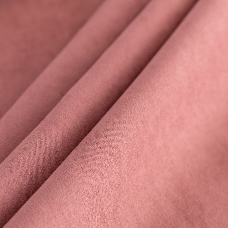 Ткань средней плотности с ворсистой и мягкой поверхностью, имитация замши. Практичная, износостойкая с высоким уровнем светонепроницаемости. Легко драпируется и держит заданную форму. Не сминается, быстро сохнет. Не требует дополнительного ухода.