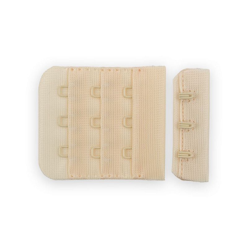 Застежки используются для пошива или ремонта бюстгальтеров. Изготовлены из приятного на ощупь нейлона, прочные, прослужат долгое время без замены. Наличие нескольких рядов с петлями дает возможность регулировать обхват под грудью. Застежки представляют собой 2 части: 1 часть - 3 крючка, 2 часть - 3 ряда по 3 петли.