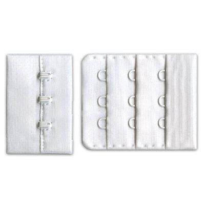 Застежки используются для пошива или ремонта бюстгальтеров. Изготовлены из приятного на ощупь нейлона, прочные, прослужат долгое время без замены. Наличие нескольких рядов с петлями дает возможность регулировать обхват под грудью. Застежки представляют собой 2 части: 1 часть - 3 крючка, 2 часть - 3 ряда по 3 петли.