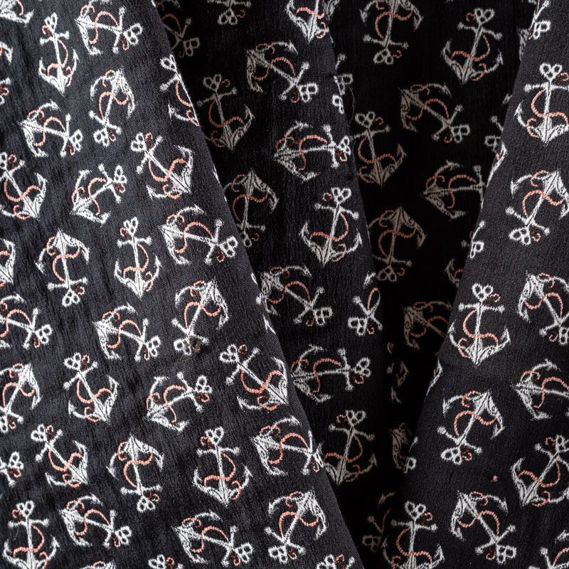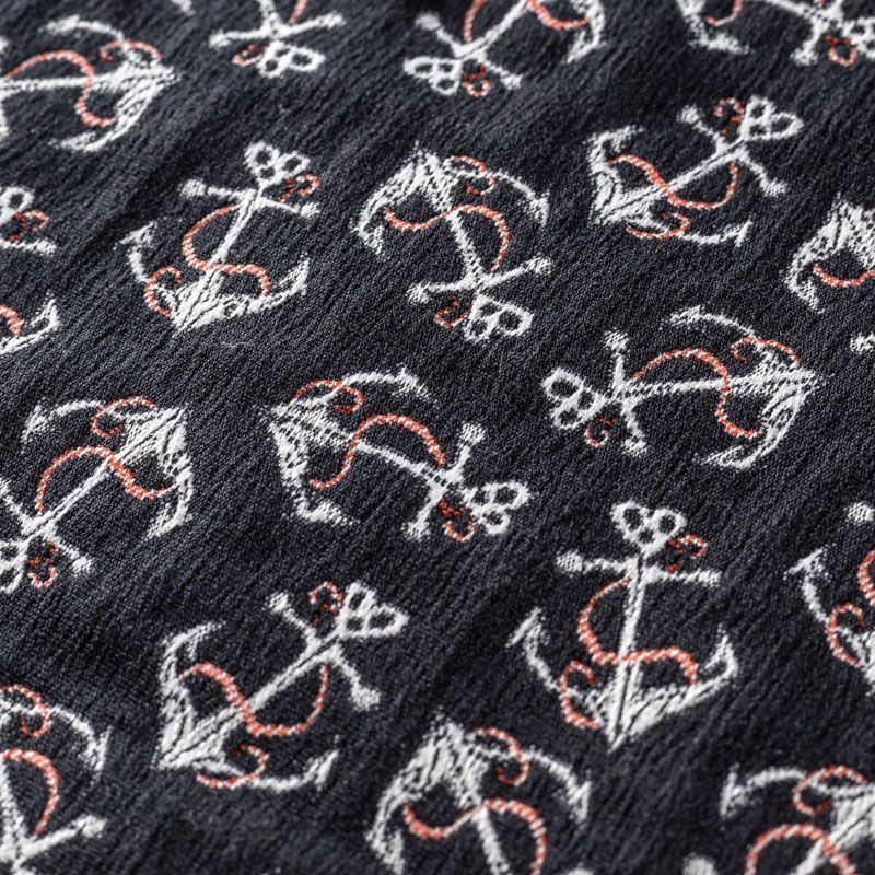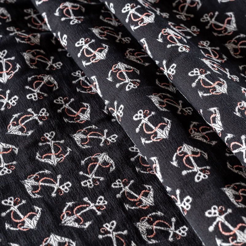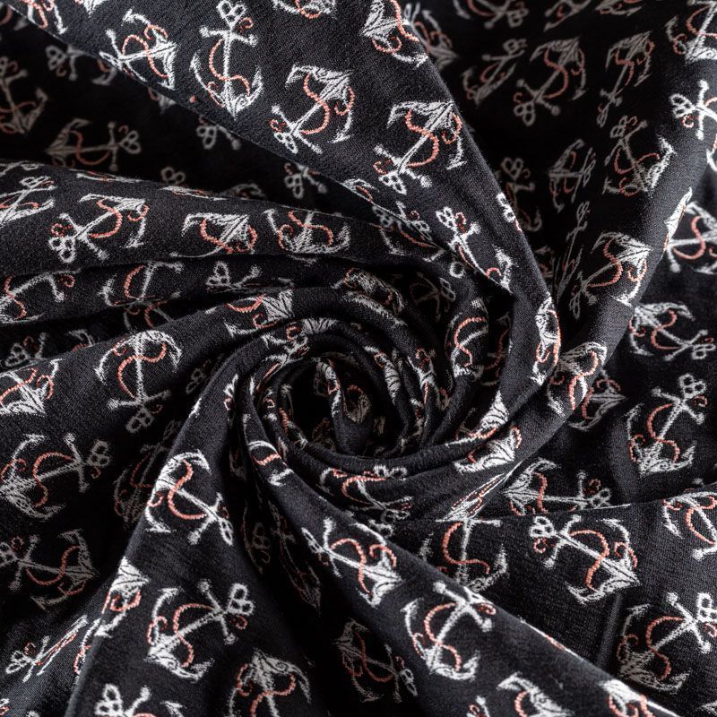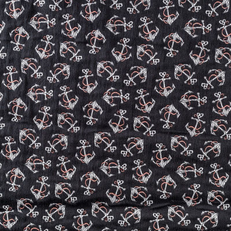 Итальянский набивной жаккард с морским дизайном. Ткань средней плотности, поверхность матовая,фактурная, хорошо драпируется и держит форму, не много тянется, не просвечивает. Подойдет для пошива повседневных костюмов, платьев-футляров, жакетов, топов, летних пальто, бомберов, юбок или шорт.