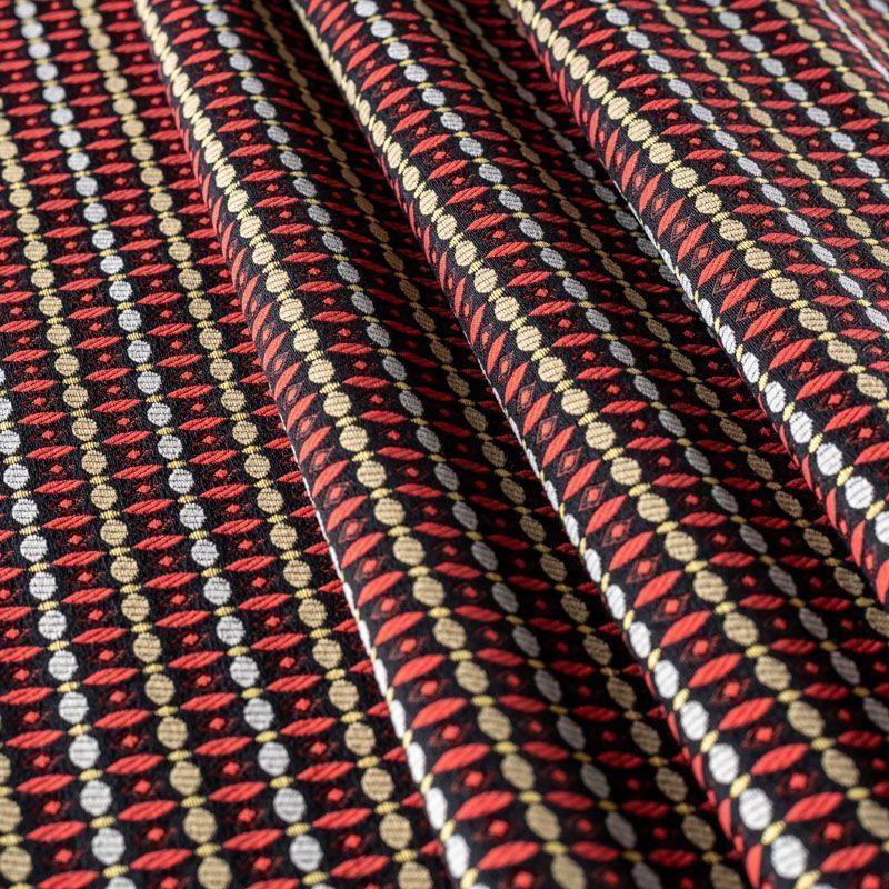 Мягкий хлопковый жаккард в черном цвете с ярким мелким абстрактным узором. Ткань пластичная, непрозрачная, приятная на ощупь, тянется за счет эластана в составе, форму не держит, но хорошо драпируется красивыми складками. Будет комфортна для пошива костюма, женственного платья, юбки или брюк.