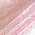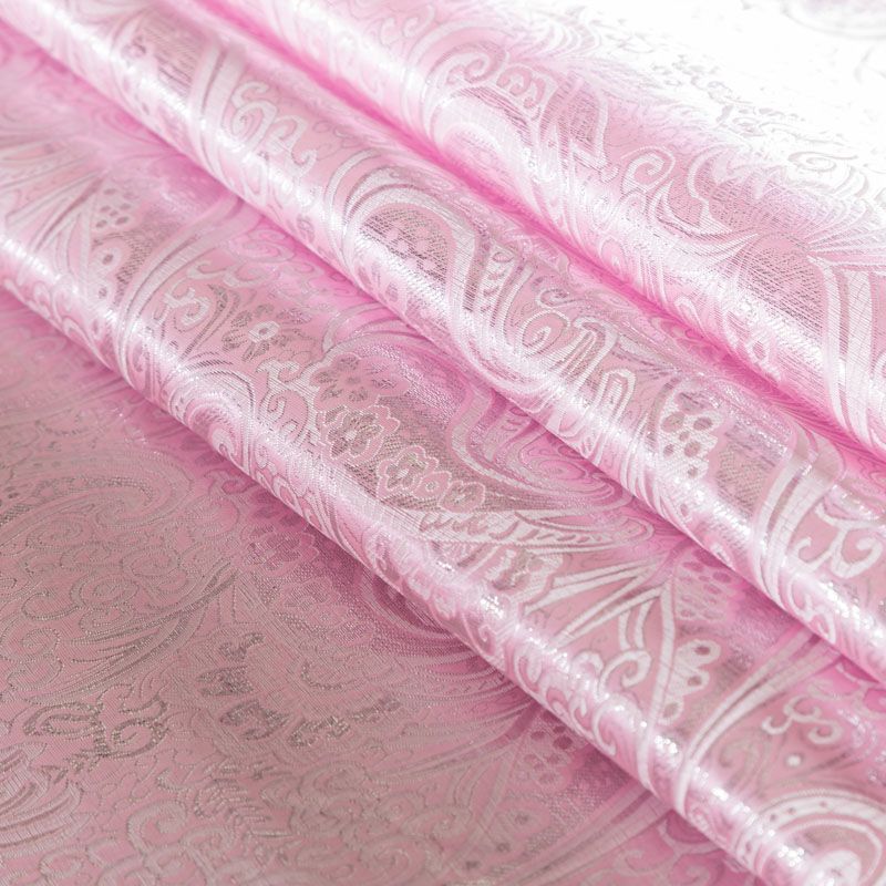 Парчевый жаккард плотного переплетения с декоративной поверхностью, с орнаментом пейсли из блестящих нитей. Ткань легкая, отлично драпируется, держит форму, отличается прочностью, долговечностью, износостойкостью и простотой в уходе, не смотря на свою высокую декоративность. Нарядность ткани придает серебристая люрексовая нить. Подходит для пошива юбок, платьев, топов, сценических костюмов.