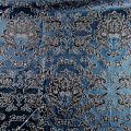 Итальянский жаккард с рельефным металлизированным рисунком. Принт является двухсторонним, поэтому возможно использование материала с двух сторон. Ткань жесткая, плотная, но легкая, дает возможность создавать пышные силуэты, объёмные драпировки. Применяется для пошива нарядной и вечерней одежды.